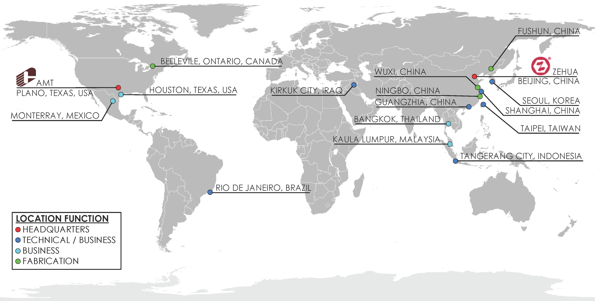 Other facilities with technical, business and/or fabrication functions are situated over several continents.