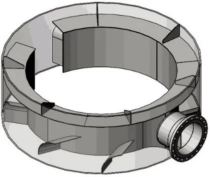 Tangential Inlet Vapor horn for both liquid-vapor separation and feed distribution. This distributor contains integrated vanes inside the housing, allowing liquid and vapor to be effectively separated.