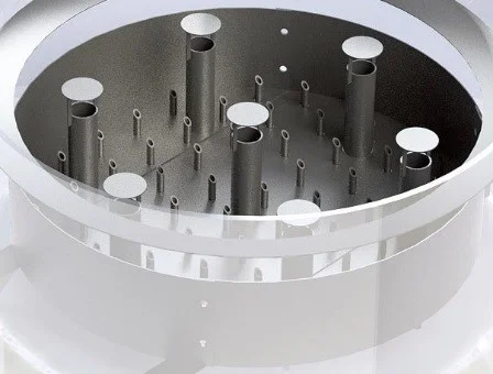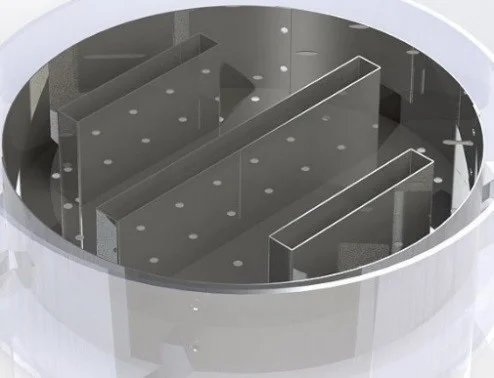 Pan type distributor with “V”-notched drip tubes. Specially designed for severe fouling services.