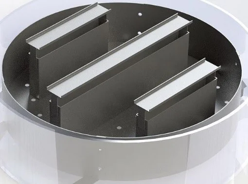 With the “V” notches, a high liquid turndown ratio can be expected. Pan type distributors are typically applied to columns with smaller inner diameters.